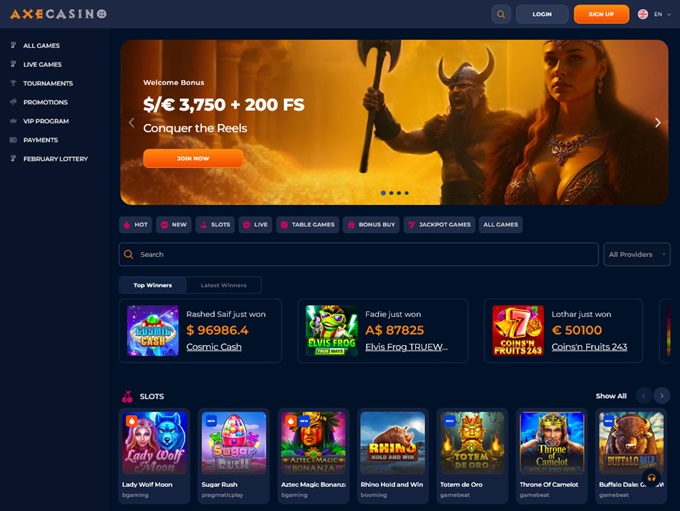 AxeCasino delivers a high-powered online gaming experience with a massive game selection, lightning-fast crypto-friendly payments, and generous multi-tiered bonuses for both casual players and high rollers.