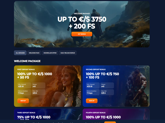 AxeCasino comes swinging with two tailored welcome packages: Standard and Highroller. The Welcome bonus pack is very generous and goes up to 4 deposits.