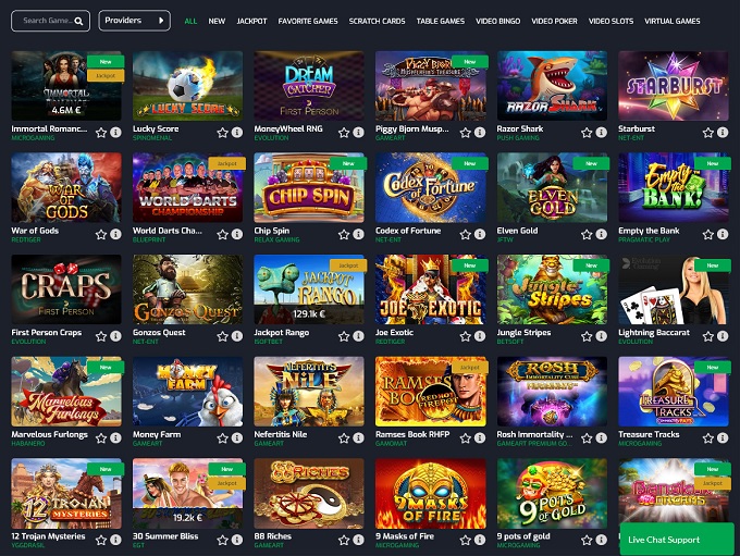 - 10,000+ Slots from top-tier developers like NetEnt, Play’n GO, Pragmatic Play, Push Gaming, and Yggdrasil.