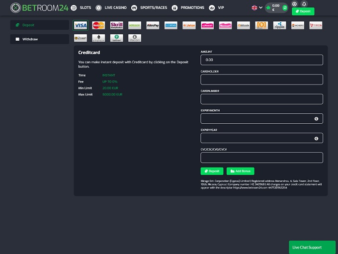 Betroom24 is as crypto-ready as it gets. You can find both fiat and crypto payments available.