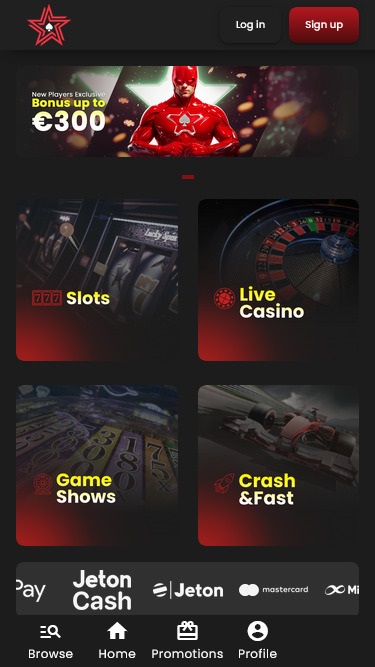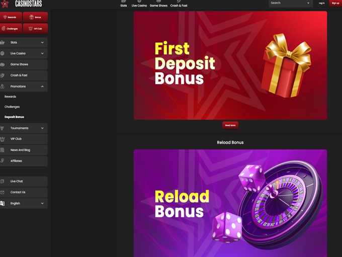 Compared to its sister sites, CasinoStars has a more appealing design and the combination of red and black colour is not just eye-catching, it’s intuitive. Navigation is smooth, tabs are well-organized, and the entire site is fully responsive across desktop and mobile.
