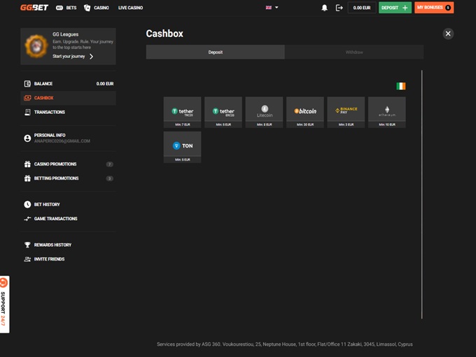 Our take: We tested the withdrawal process of GGBet casino and we can say that the deposit is fast and easy. The money is in your account within seconds. However, we advise players to read T&C carefully to find out what you need before cashing out since the withdrawal can take up to 30 business days for some of the countries. You can see the available withdrawal payment methods in your cashier and it also depends on the country. The withdrawal process requires the KYC, you will need to submit the docs showing your identity plus a selfie. These are the measures to protect fraud. GGBet doesn’t limit the amount that you can withdraw.
