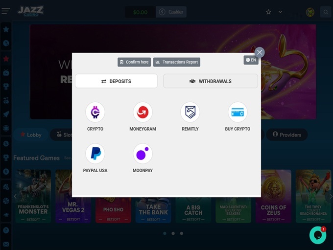 With 2,000+ games from developers like BetSoft, Wazdan, and 1x2 Gaming, the variety here at Jazz casino is substantial: