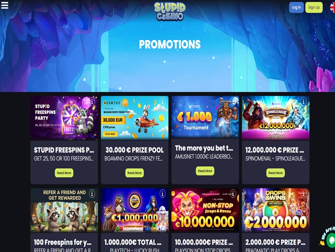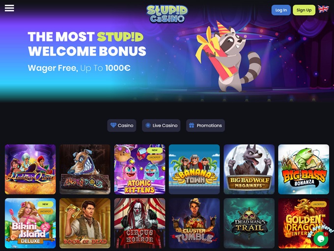 Stupid Casino, launched in 2023 and operated by Versus Odds B.V. under a Curaçao licence( license No. OGL/2024/1335/0780), embraces its playful name with a bold promise: massive game variety, crypto‑friendly banking, and truly wager‑free bonuses. At first glance the raccoon‑themed design and tongue‑in‑cheek branding give it a lighthearted feel—but underneath, there’s a serious offering for players who value fairness and flexibility.