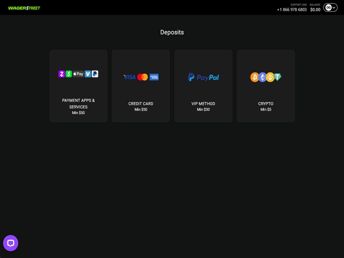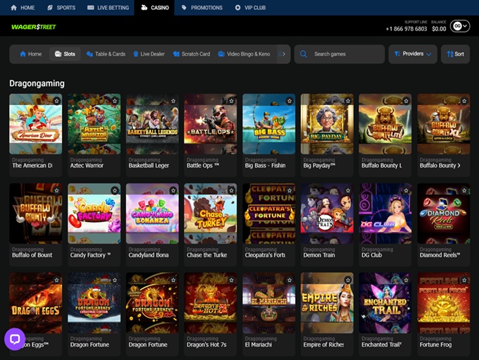 Wager Street is a casino and sportsbook which caters to both casino and sports enthusiasts. The tabs are clearly displayed which makes it easy to find what you like.